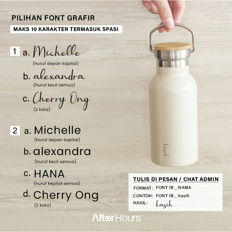 Net Store AFTER HOURS Vano - Tumbler Vacuum Insulated Bottle 350ml Tahan Panas Dingin dengan Handle Grafir Nama Engrave TATARUMA