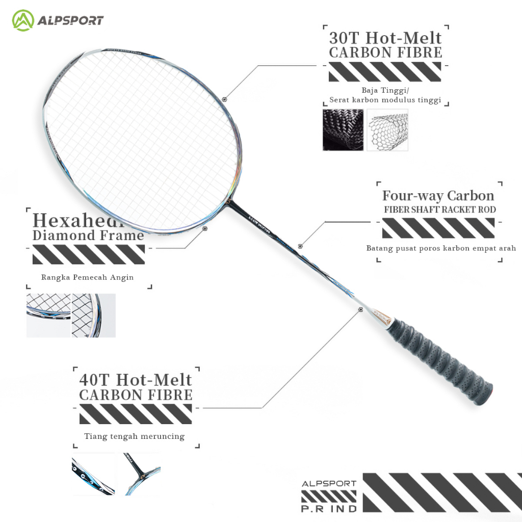 ALPSPORT New Rangka Ajaib Pelangi BBQ3.0 T800 8U Raket Bulutangkis Profesional Ringan Ofensif Merah Muda/Putih/Hitam Max