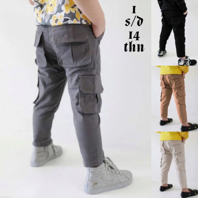 Celana Cargo Anak Panjang Slimfit Bahan Combed Drill NStreach Karet Melar Usia 1-14 Tahun Tunxtunx Kids