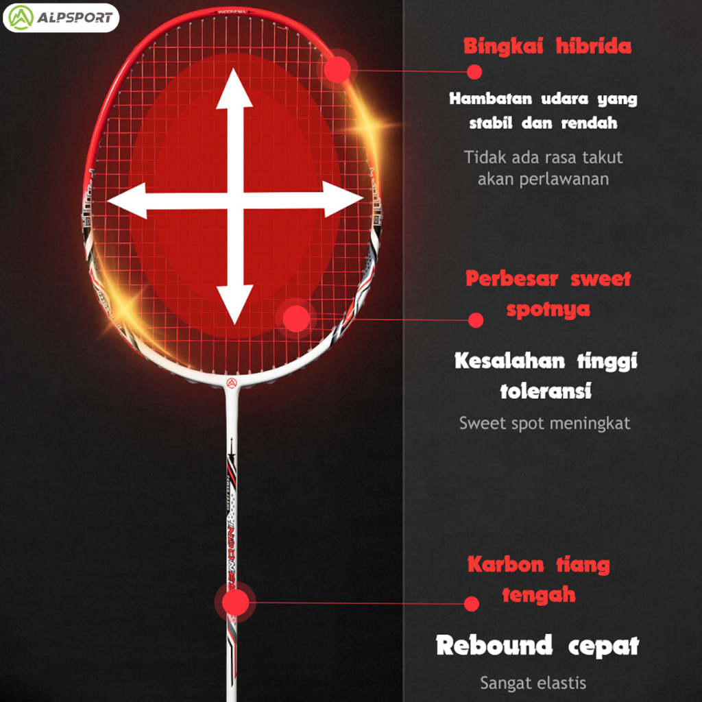 ALP Raket Peringatan ID 5U 77g Max 30LBS Badminton racket Serat Karbon Penuh 100% Ultralight Raket Bulutangkis Merah Sen