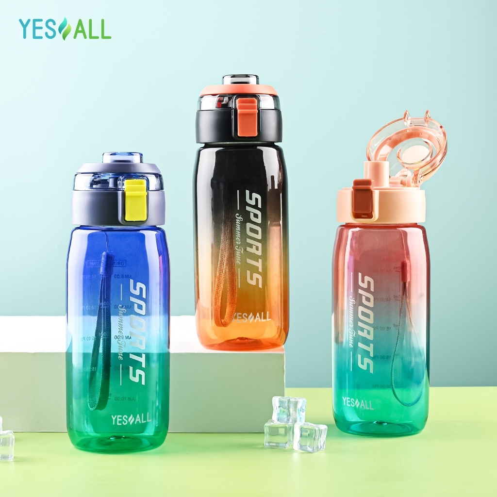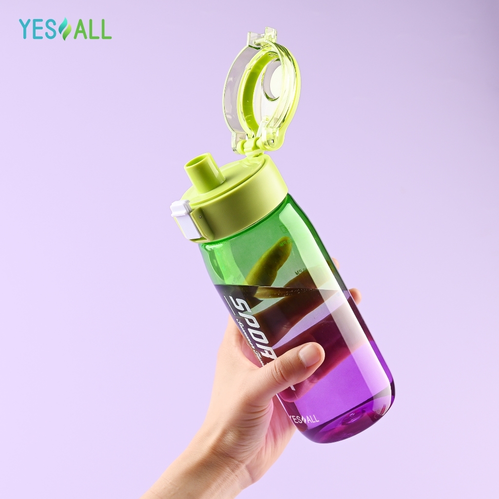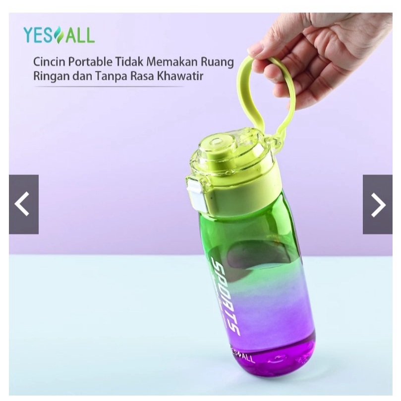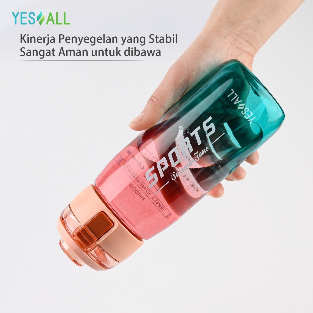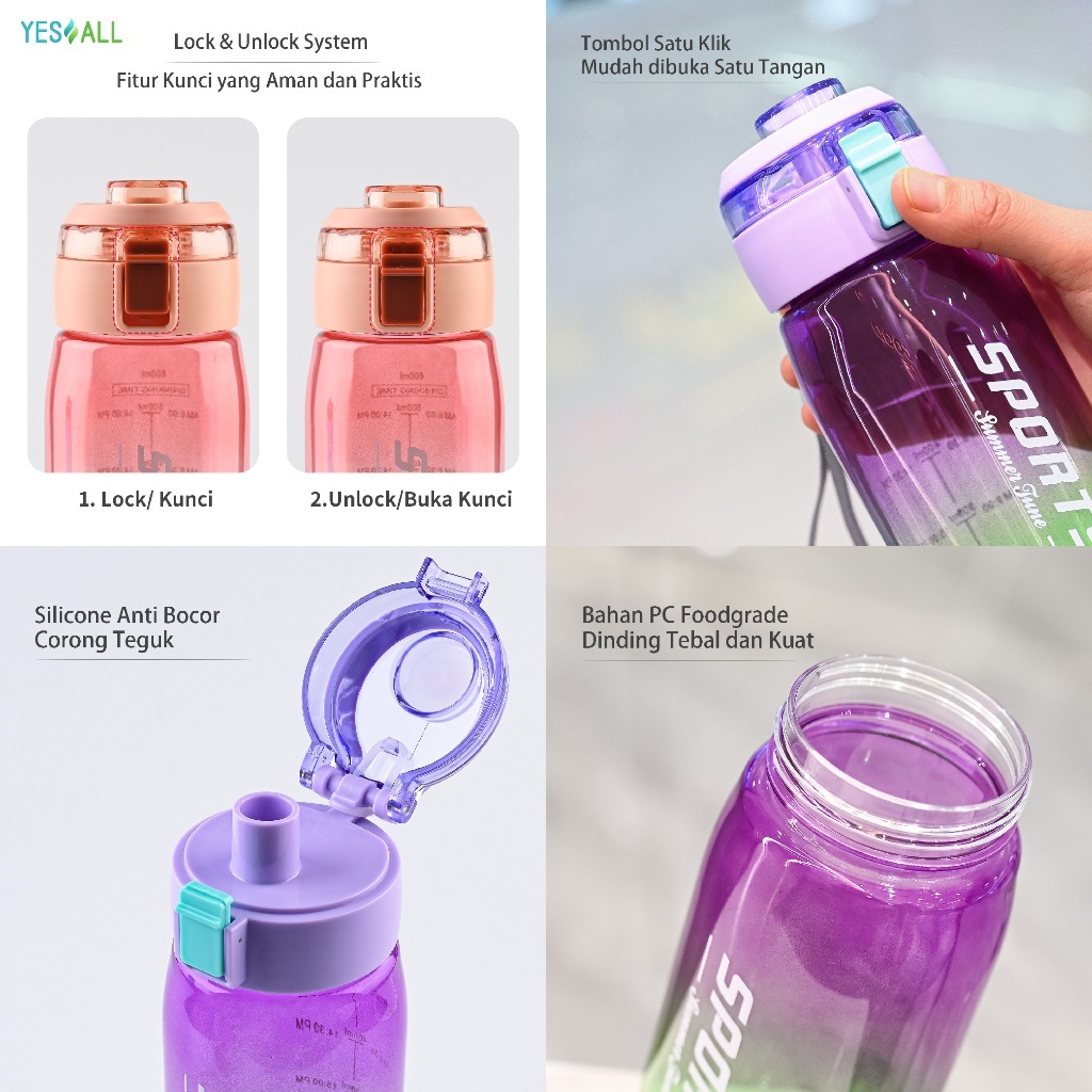 Net Store YESALL 600ml Botol Minum Pelangi Motivasi Gradasi - Tutup Flip Thumbler Penanda Waktu Gradiasi Rainbow Warna Transparan SH001