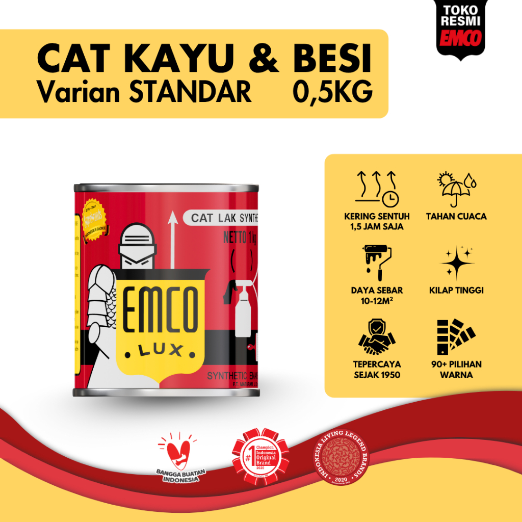 Putih Gloss, Putih Doff, Hitam Gloss, Hitam Doff, Hitam Super Doff, STD 31 Coklat Kurma, STD 32 Abu-Abu Lumba, STD 33 Coklat Kakao, STD 34 Abu Aluminium, STD 36 Jeruk Nipis, STD 37 Coklat Batik, STD 40 Sawo Matang, STD 42 Coklat Gaharu, STD 44 Sepia, STD 45 Batu Bulan, STD 46 Teh Hijau, STD 48 Kuning Keju, STD 49 Hijau Giok, STD 51 Kuning Kng, STD 52 Blewah, STD 53 Kunang-kunang, STD 54 Arumanis, STD 55 Sagu, STD 59 Kuning Nanas, STD 58 Abu Marmer, STD 62 Coklat Pala, STD 63 Hijau Kaktus, STD 65 PadI, STD 69 Pasir Pantai, STD 76 Kayumanis, STD 70 HijauSemanggi, STD 73 Abu Granit, STD 79 Rotan, STD 80 Abu-abu Baja, STD 87 Coklat Kopi, STD 90 Hijau Limau, STD 91 Coklat Madu, STD 93 Hijau Kristal, STD 96 u Intan, STD 104 Hijau Ombak, STD 106 u Kabut, STD 107 u Prsln, STD 108 Tembikar, STD 109 u Awan, STD 110 Gurun Pasir, STD 111 Merah Bata, STD 113 Gading, STD 120 u Kutub, STD 121 Hijau Manik, STD 131 Coklat Hzlnt, STD 133 Coklat Maple, STD 136 Hijau Kiwi