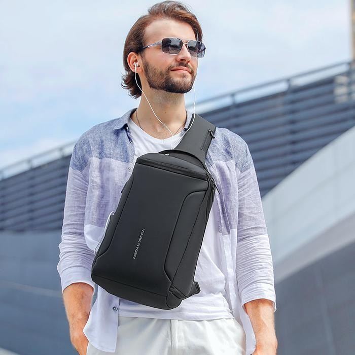 Mark Ryden MR7069 Tas Selempang Pria Crossbody Waist Sling Bag USB TSA