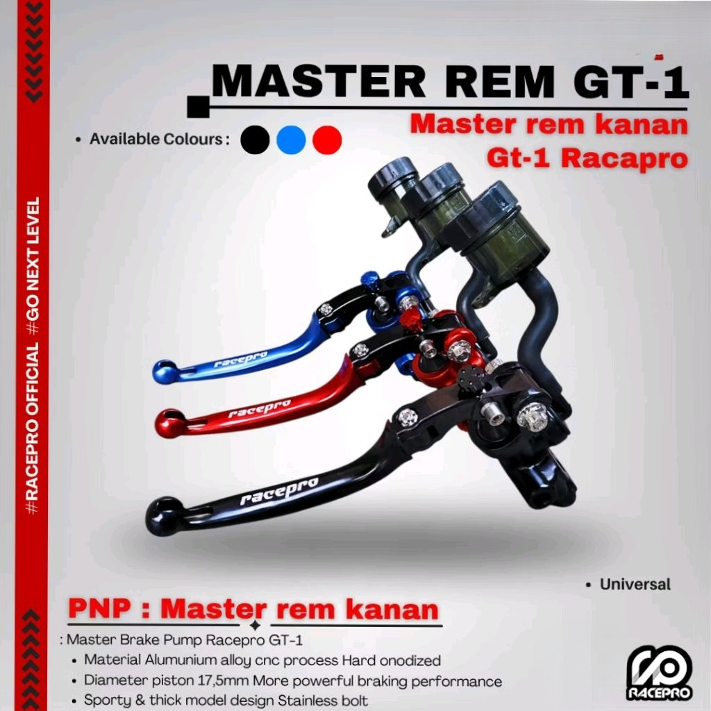 MASTER REM RACEPRO GT-1 17,5 MM MASTER BRAKE PUMP GT-1 MASTER REM KANAN RACEPRO GT-1 SET KOPLING KIRI