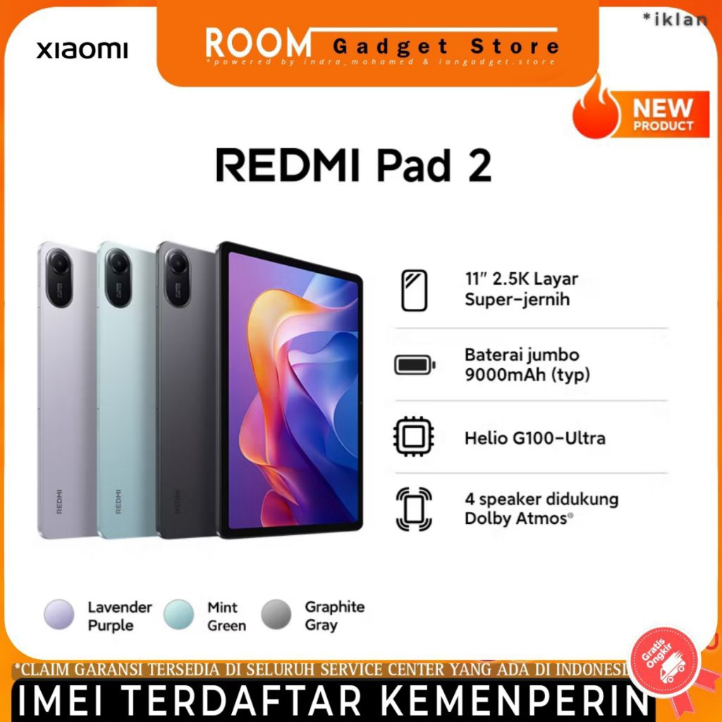 Xiaomi Redmi Pad 2 (4/128G) | 11" 2.5 Layar Super-jernih | Helio G100-Ultra [Official Store] Mint Green, Tablet