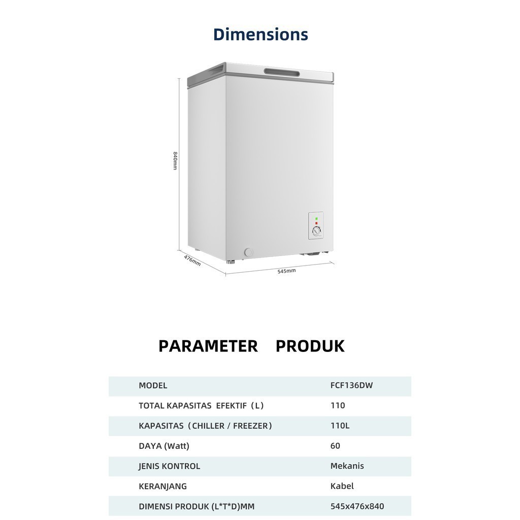 CHANGHONG FCF136DW FREEZER BOX CHEST FREEZER 110 Liter 60 Watt