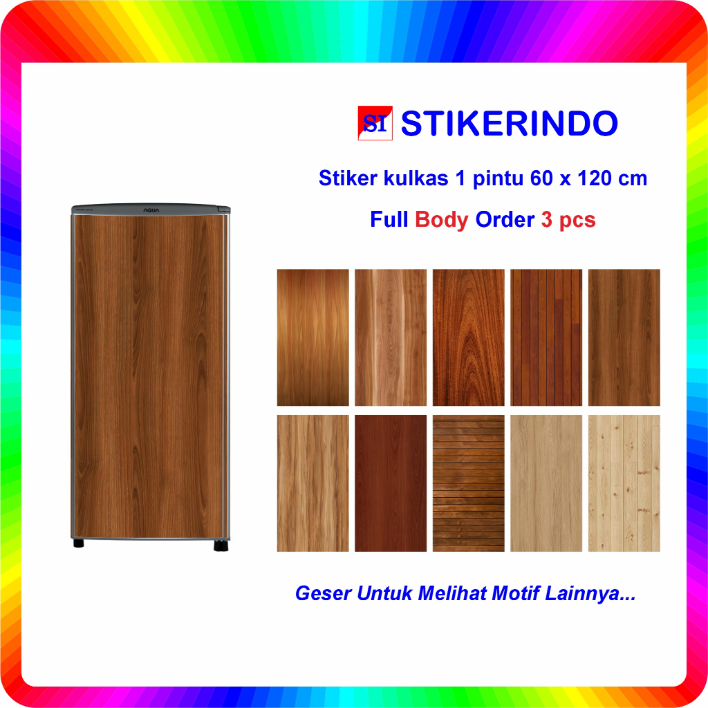 Sticker Stiker Kulkas 1 Pintu Motif Kayu atau Serat Kayu Harga Grosir