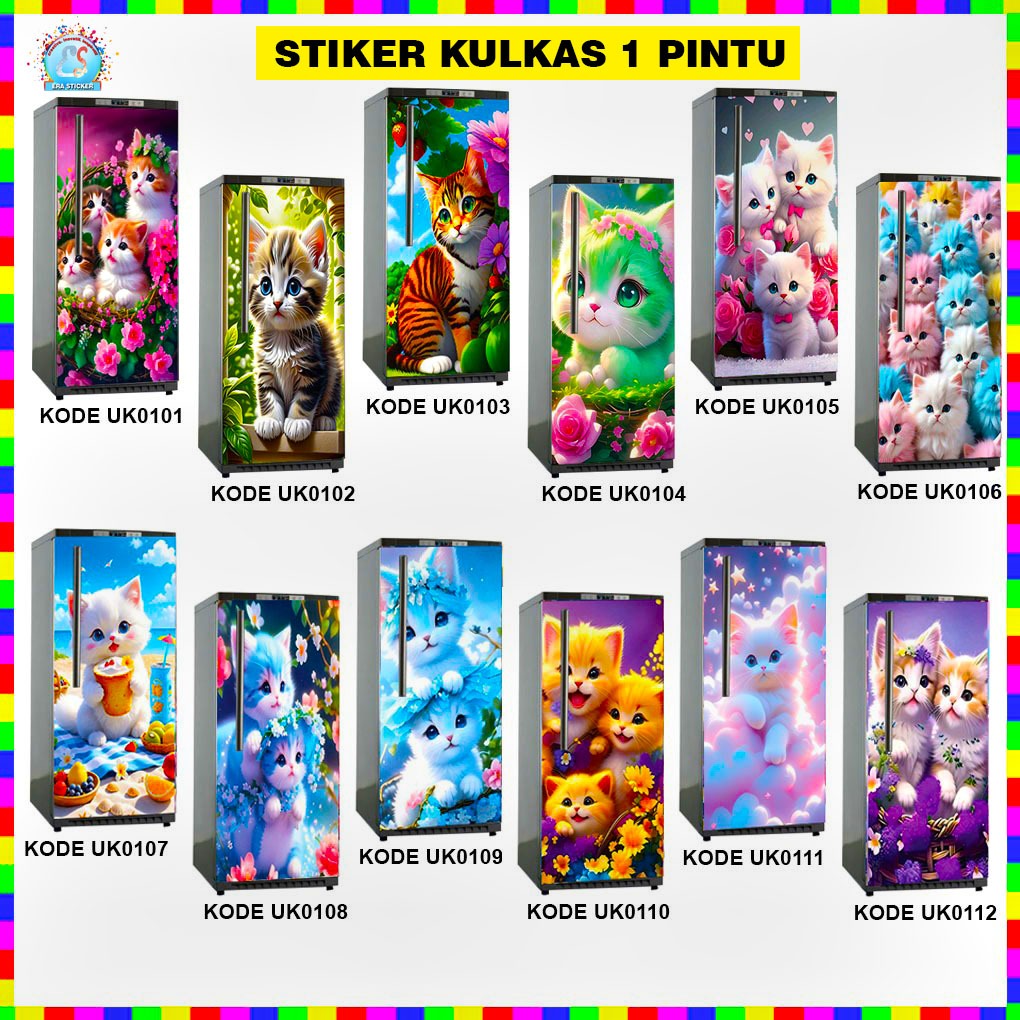 Stiker Kulkas 1 Pintu Motif Kucing Vinyl Gloss