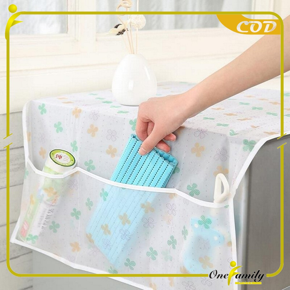 EC ONE-C116 Cover Penutup Kulkas Anti Air Sarung Alas Taplak Kulkas Waterproof Dgn Tempat Penyimpanan