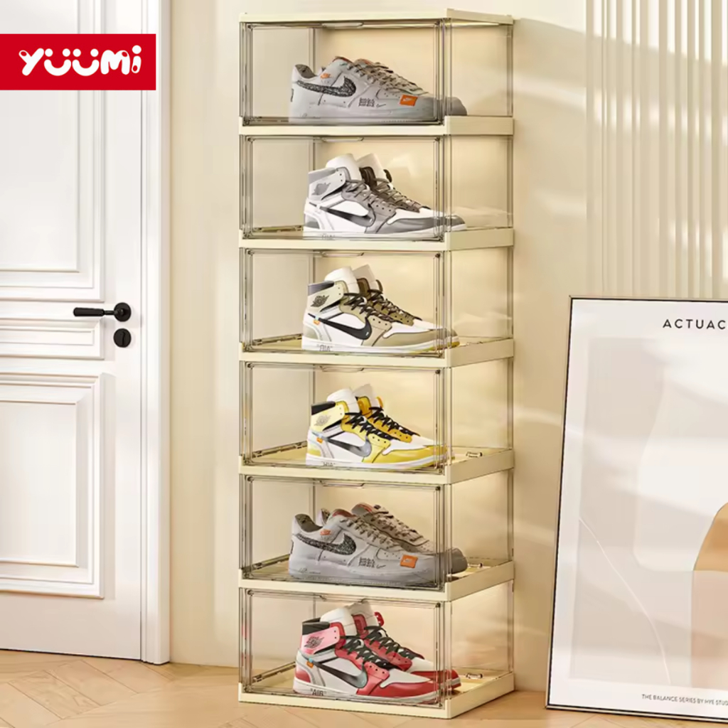 Net Store Yuumi Kotak Sepatu Ukuran Ekstra Besar Transparent Acrylic- Lipat, Simpan, Anti Debu, Multifungsi, Rak Sepatu Portable - Tidak Perlu Instalasi