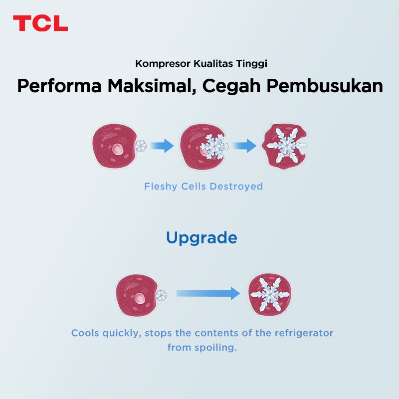 TCL Kulkas 2 Pintu (F130-A50) - Kapasitas 118L - Rak Freezer Terpisah - 3D Surround Cooling - Adjustable shelves - Low N