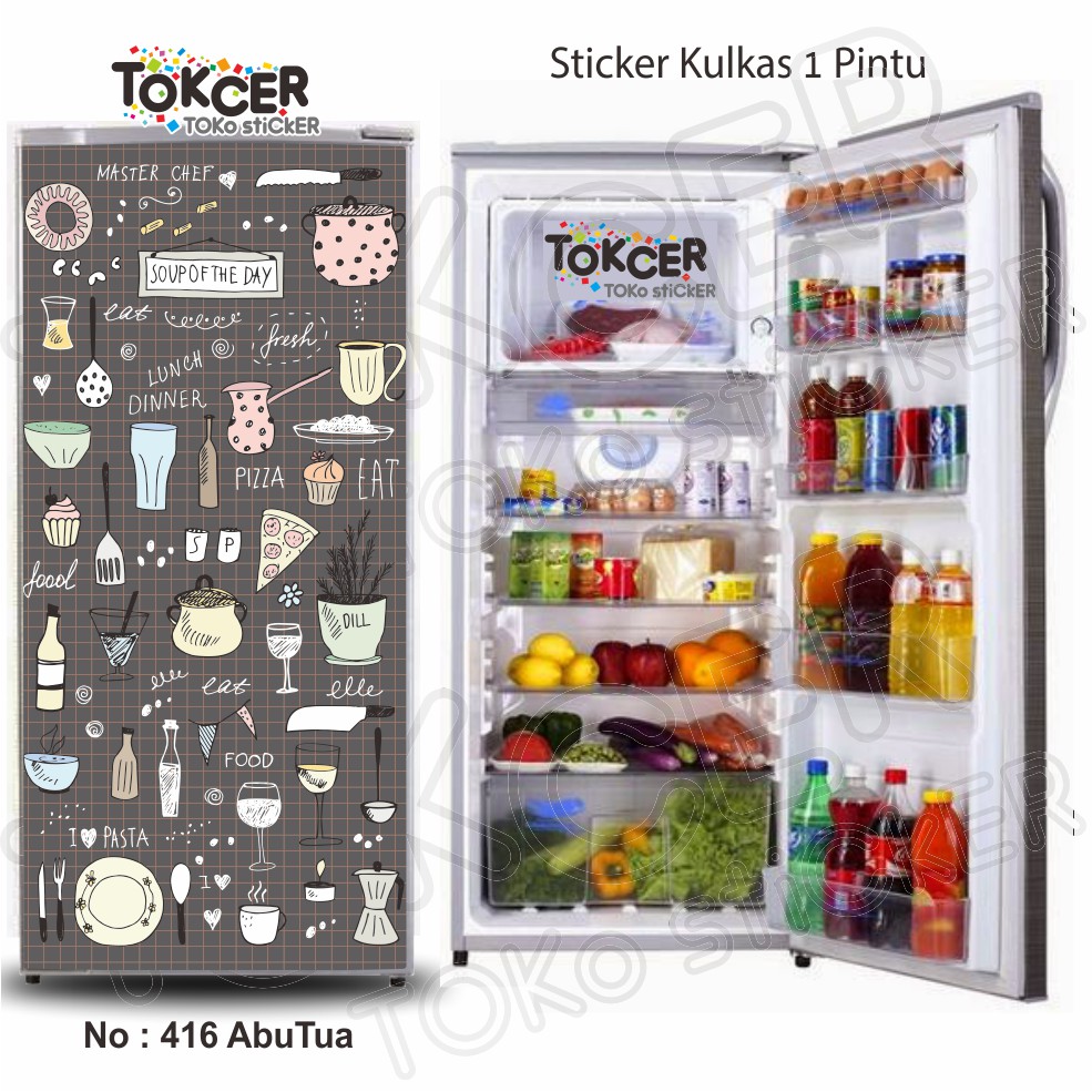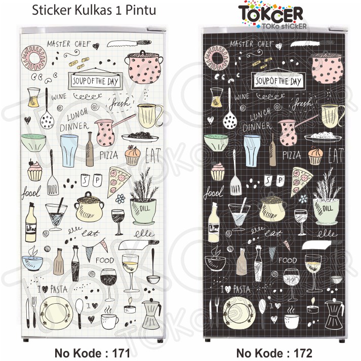 Stiker Kulkas LAMINATING GLOSSY ukuran 1 Pintu atau 2 Pintu Motif MASTERCHEF Anti LUNTUR Anti AIR Tahan LAMA