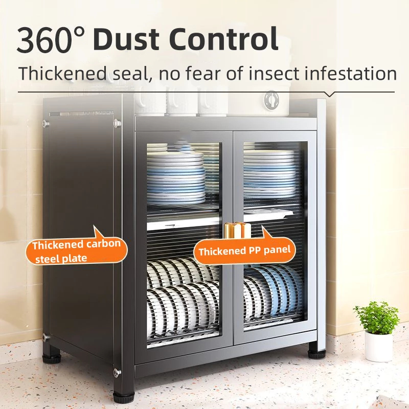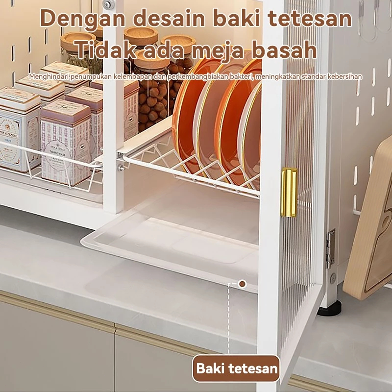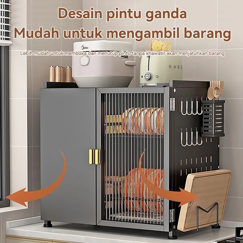 Rak Rak Piring Dapur Rak Lemari Multifungsi dengan Pintu Kabinet Sepenuhnya Tertutup Anti Serangga