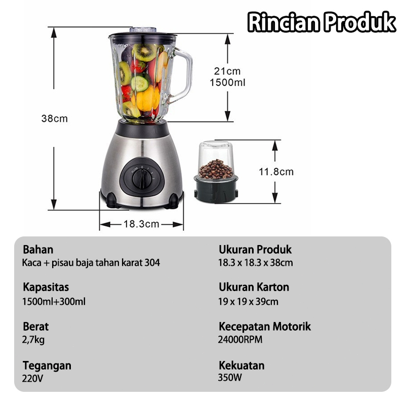 [Mall] BLENDER KACA BUAH 6 PISAU JUICER 300ML BLENDER JUS 2 IN 1 MESIN BLENDER SMOOTHIES 5 GIGI CHOPPER DAGING BERKUALIT