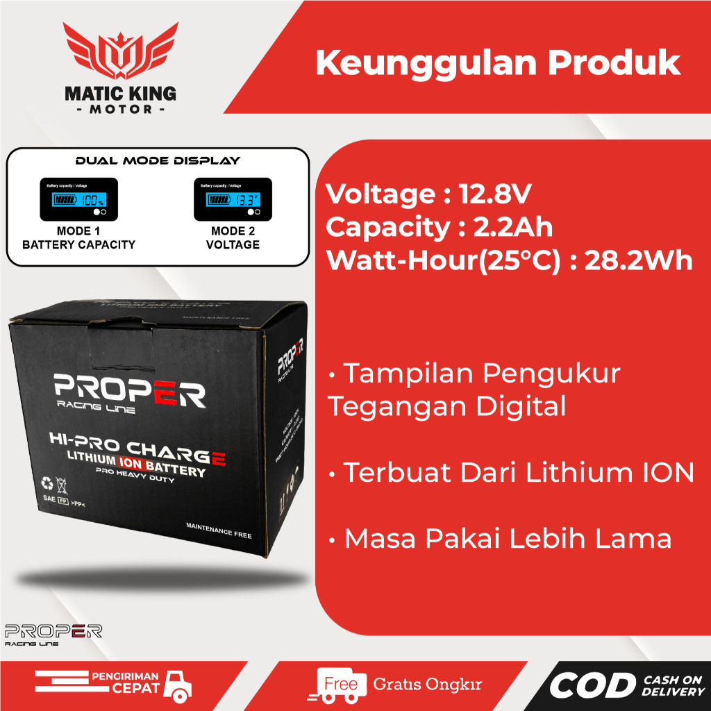 PROPER Aki Motor Accu Lithium ION Battery Vario PCX ADV Beat Scoopy Stylo Supra CB CBR Sonic 110 125 150 160 Fi eSP CBU CBS ABS Lokal PTZ7S Racing Line