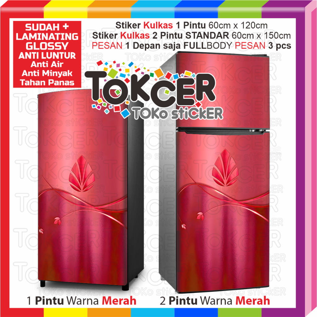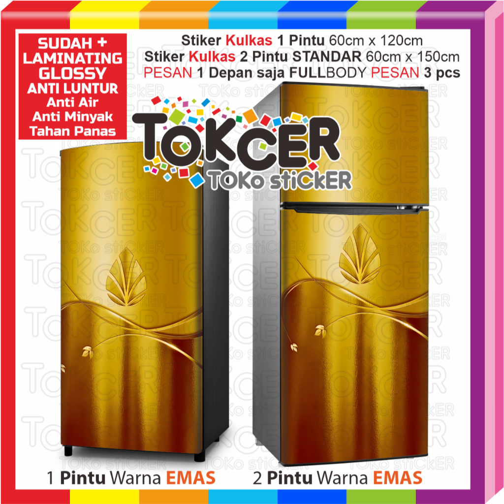 Stiker Kulkas LAMINATING GLOSSY Anti LUNTUR uk 1 Pintu atau 2 Pintu STANDAR Motif Daun BRONZE SILVER GOLD Anti AIR Anti
