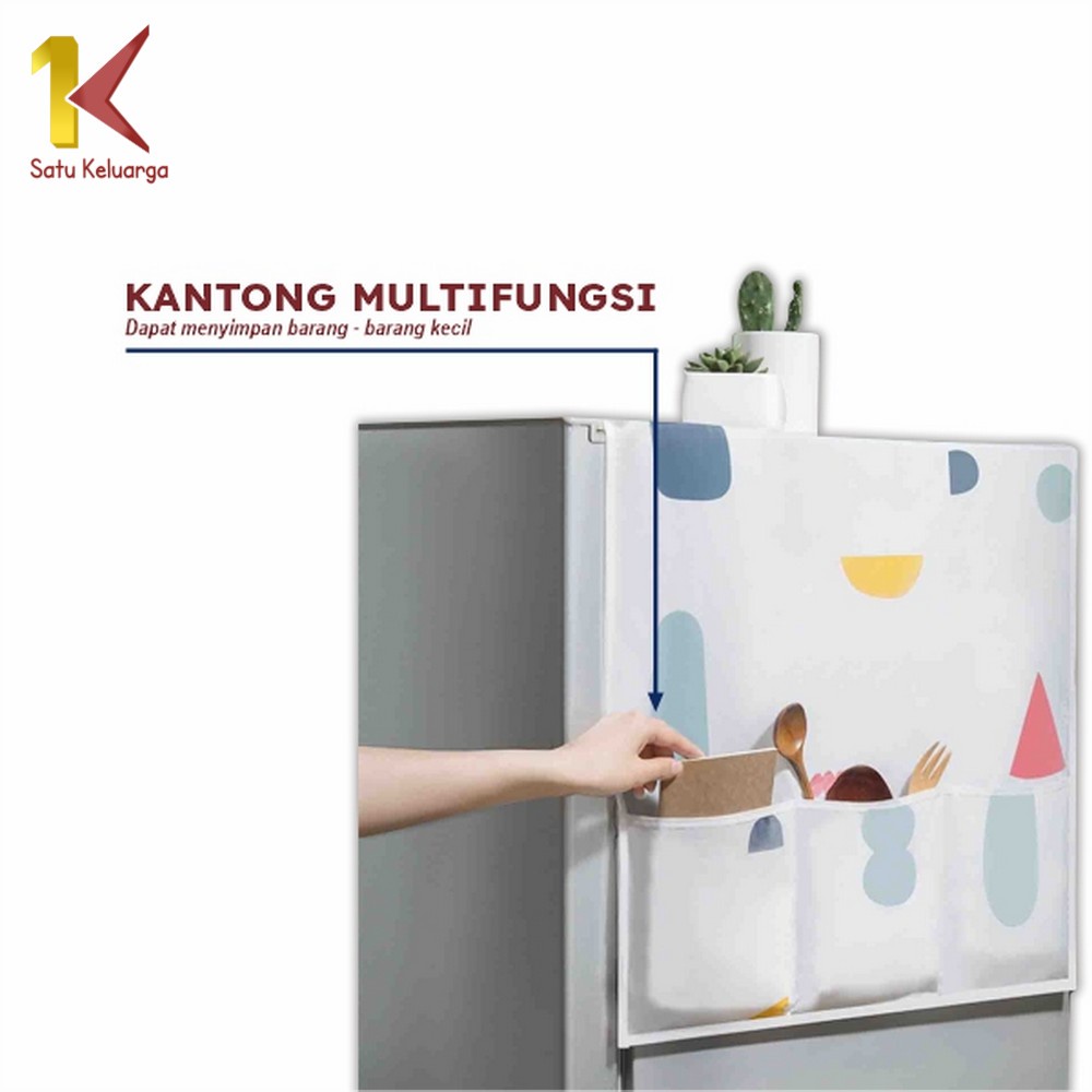 Satu Keluarga Taplak Kulkas C116 Cover Penutup Kulkas Anti Air Sarung Alas Dgn Tempat Penyimpanan