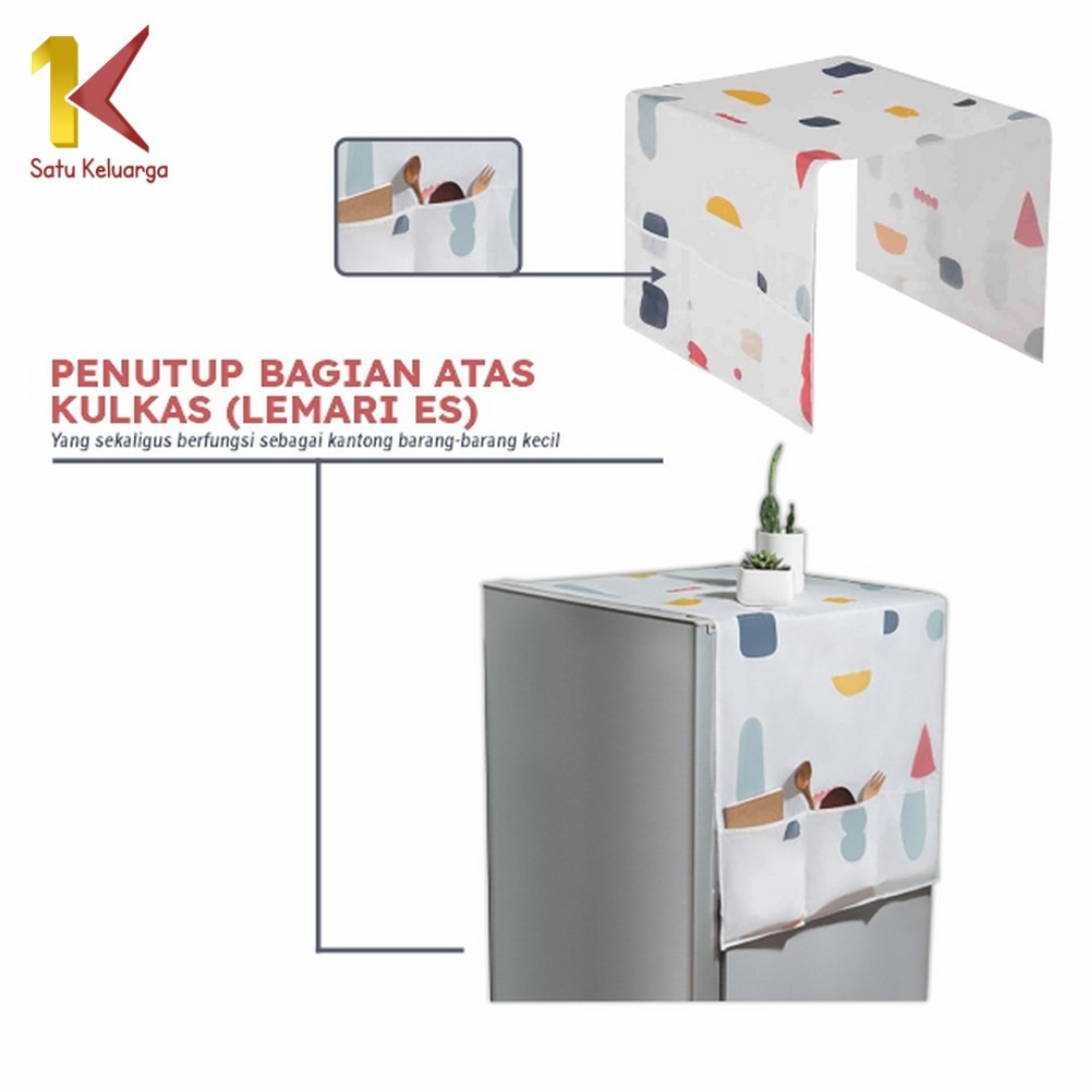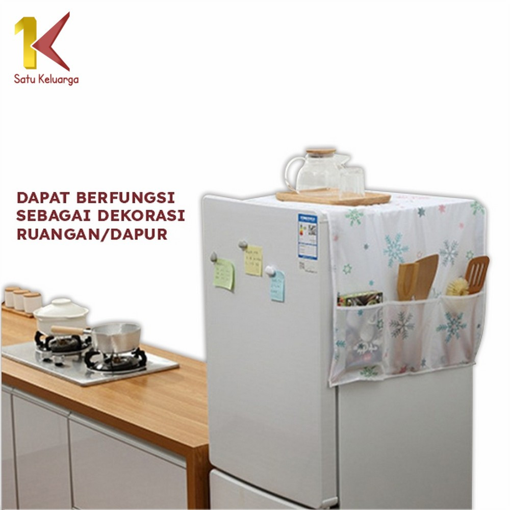 EC Satu Keluarga Taplak Kulkas C116 Cover Penutup Kulkas Anti Air Sarung Alas Dgn Tempat Penyimpanan