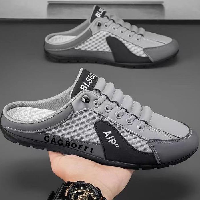 SEPATU SENDAL SLIP ON PRIA K48 SEPATU SANDAL CASUAL SNEAKERS KEKINIAN FASHION TRENDY SHOE 2025 BISA KARET KASUAL - GREY, 39