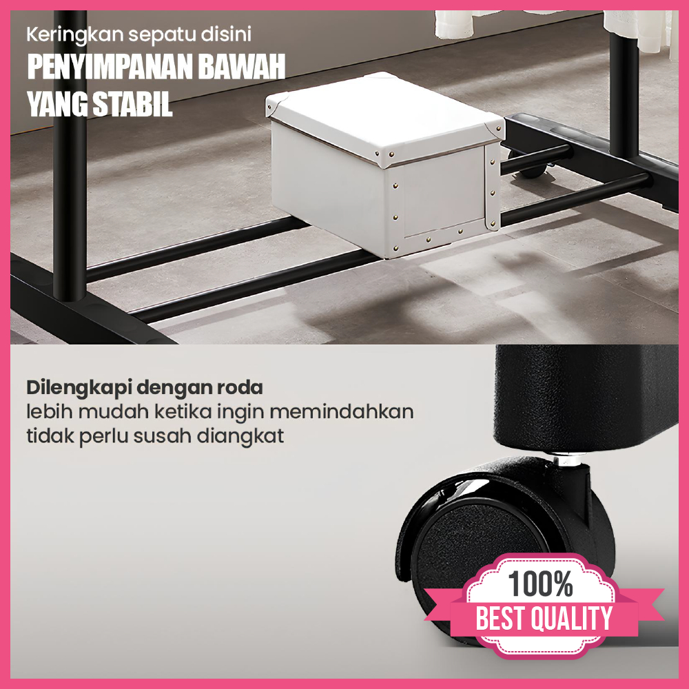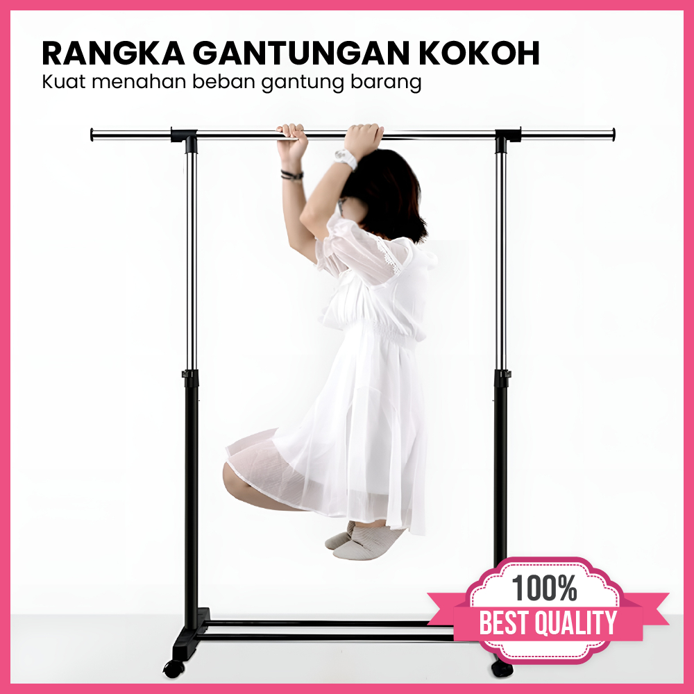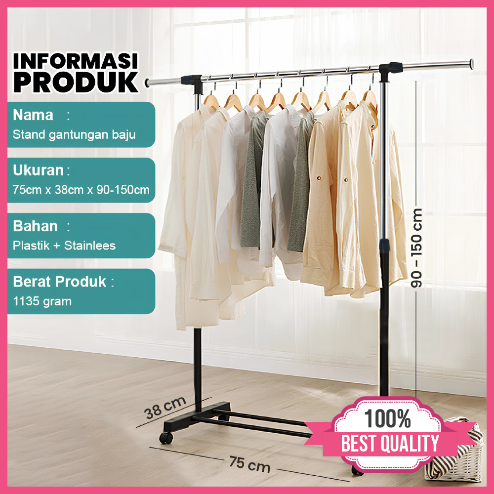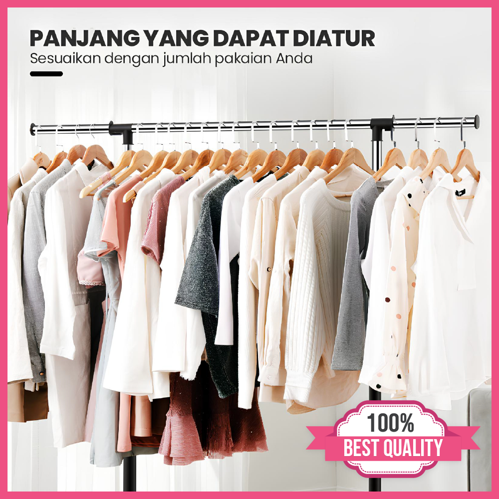Net Store Stand Hanger Gantungan Baju 4 Roda Single Double Triangle Gantung Pakaian Multifungsi Futureworld