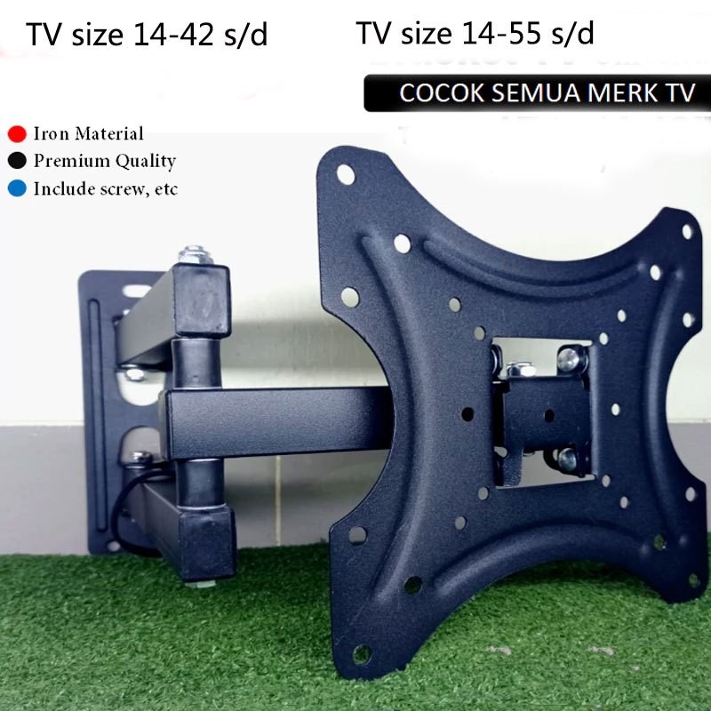 Olhome BRACKET TV 14" s/d 55" model lengan swivel LEBIH TEBAL 6 arah universal breket