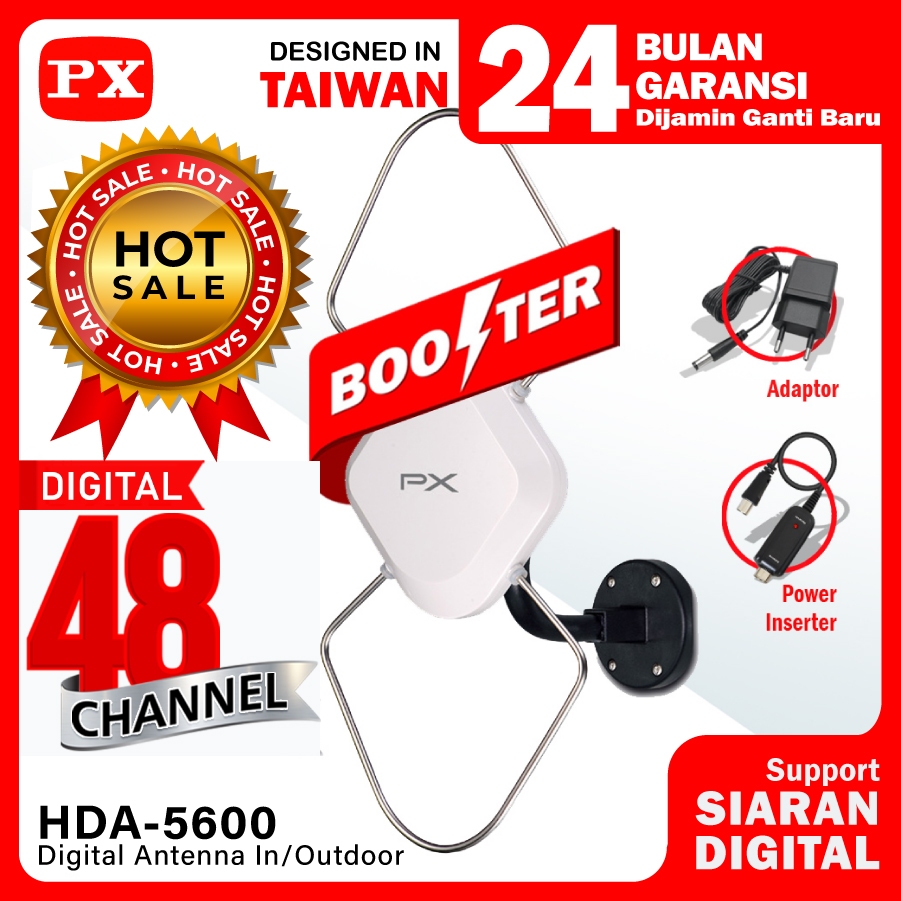 Antena TV In/Outdoor PX HDA-5600 Digital TV DVB-T2 dengan Booster dan Power Inserter
