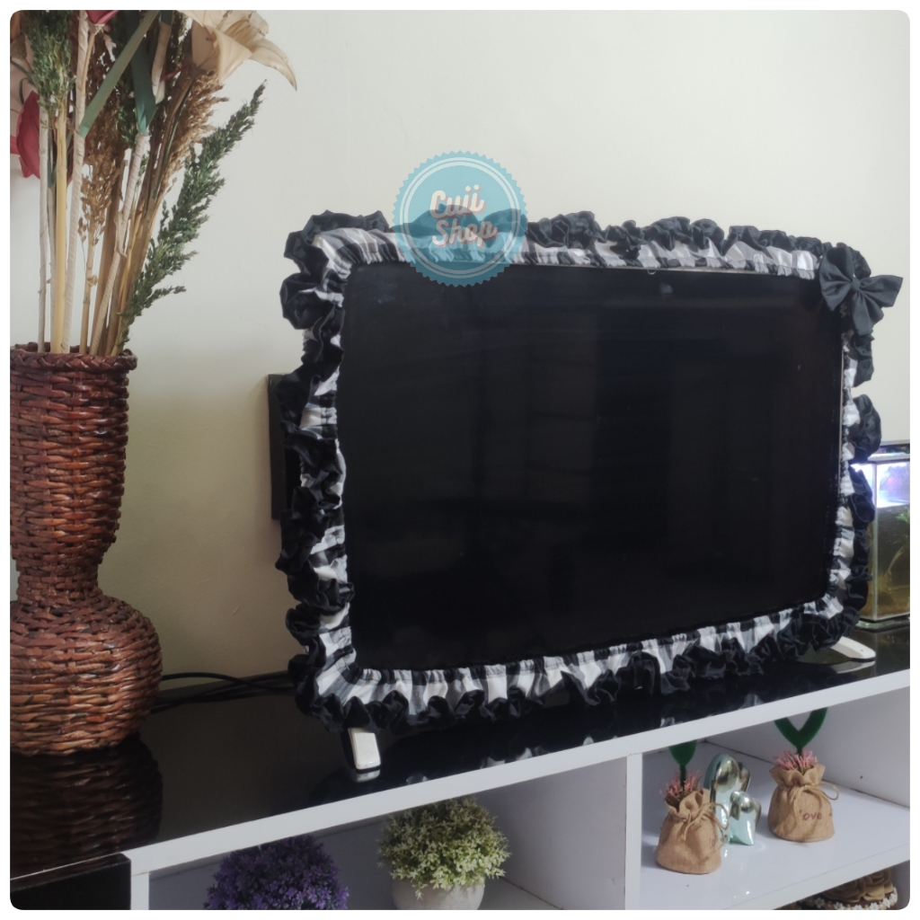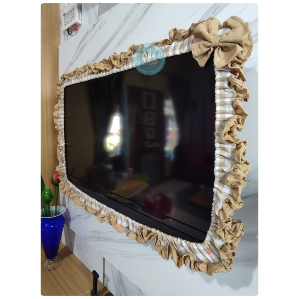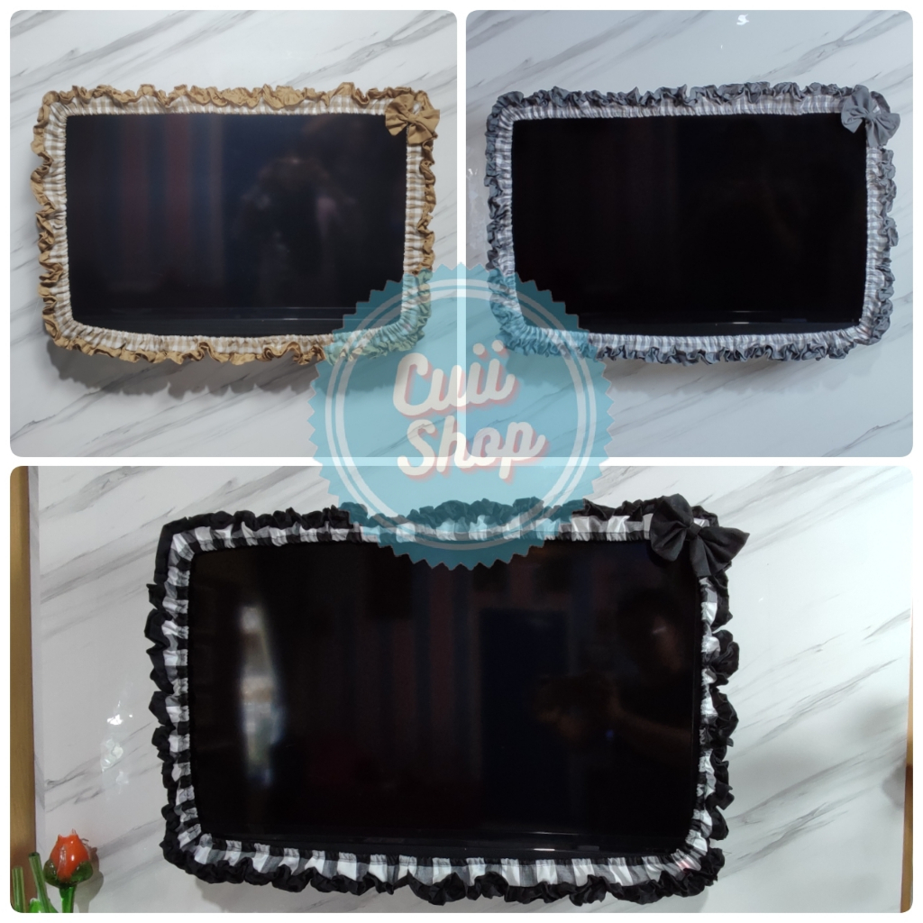 BANDO/Cover TV/Televisi/LCD Ruffle WARNA Motif Kotak Gingham Untuk TV 24 inch - 52 inch Unik Aesthetic Kekinian by Cuii