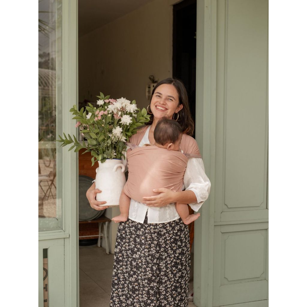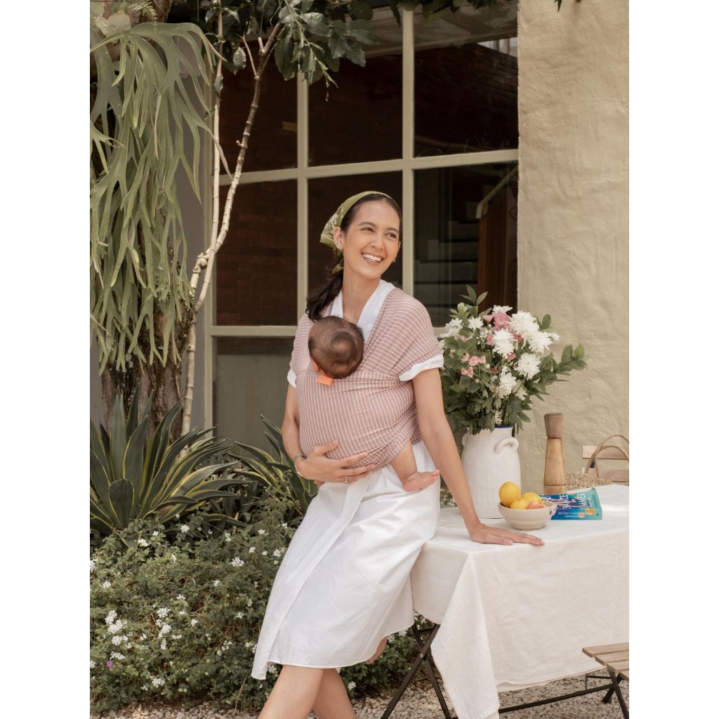 Mikhadou Stretchy Wrap - Gendongan Bayi M Shape Breton Stripe Rose Dust - Baby Carrier