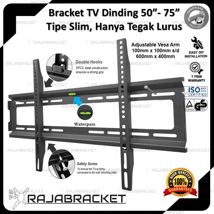 Bracket tv Braket tv Breket tv 55 65 70 75 60 50 43 42 40 inch, Waterpass Bisa Nunduk Tegak Dangak Adjustable Premium
