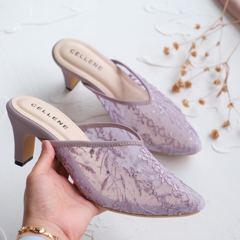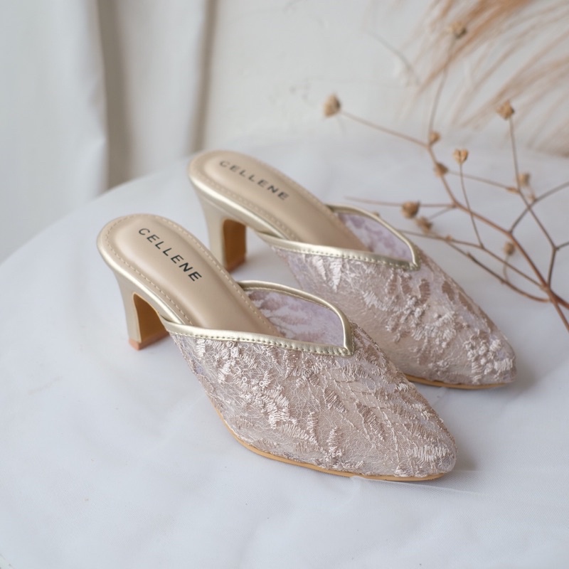 𝗖𝗘𝗟𝗟𝗘𝗡𝗘 JiA Lace Heels (9 warna) / wedding shoes 7cm selop brukat heels pengantin