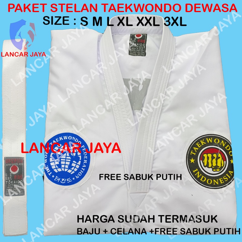 Baju Taekwondo Dewasa Sabuk Putih Bordir S-3XL