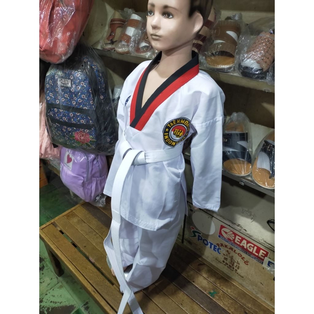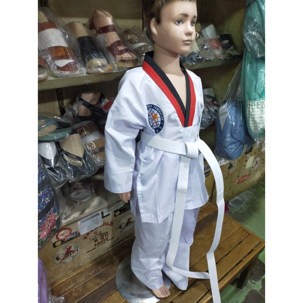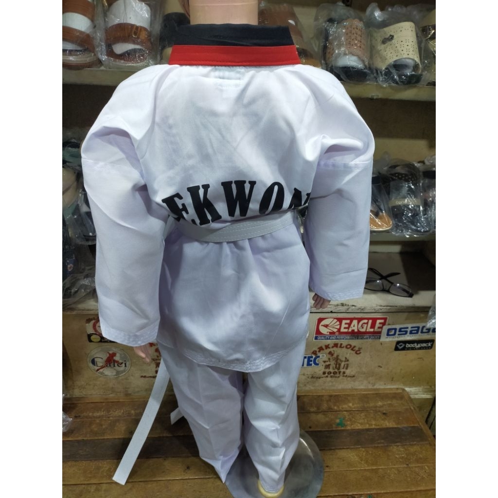 Baju Seragam Beladiri Anak Taekwondo Dobok GAP Kerah Merah Hitam
