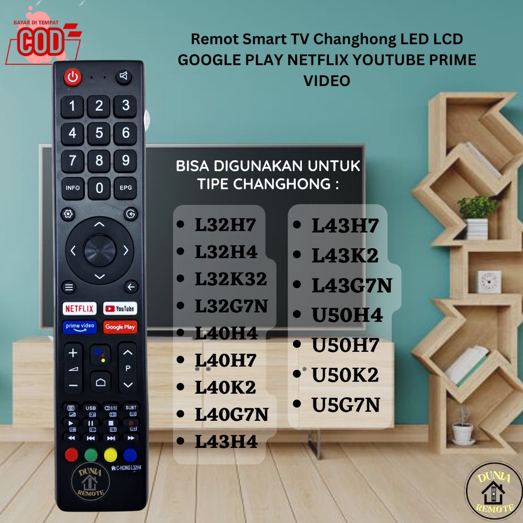 Remot Remote TV CHANGHONG Android Smart TV Led lcd L32H4 Tanpa setting