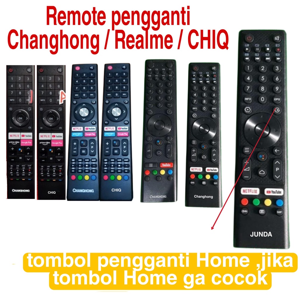 REMOTE REMOT LED JUNDA 801 COCOK DI CHANGHONG REALME SMART TV ANDROID