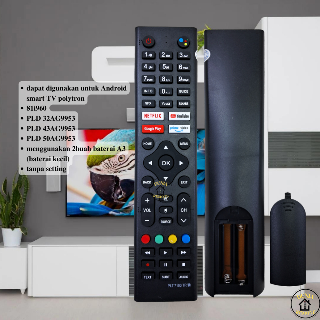 Remot Remote TV POLYTRON Android Smart TV Polytron LED LCD poly-103tv tanpa setting prime video