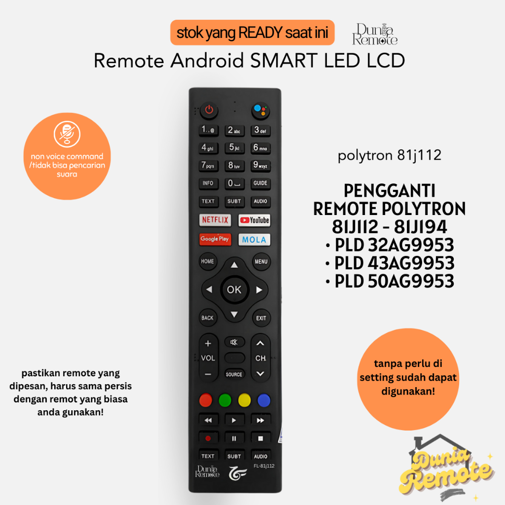 Remote Remote TV POLYTRON 81J112 Android Smart LED LCD 81i960 PLD 32AG9953 PLD 43AG9953 PLD 50AG9953
