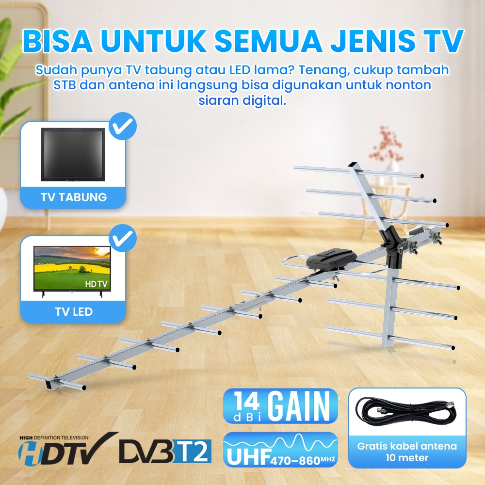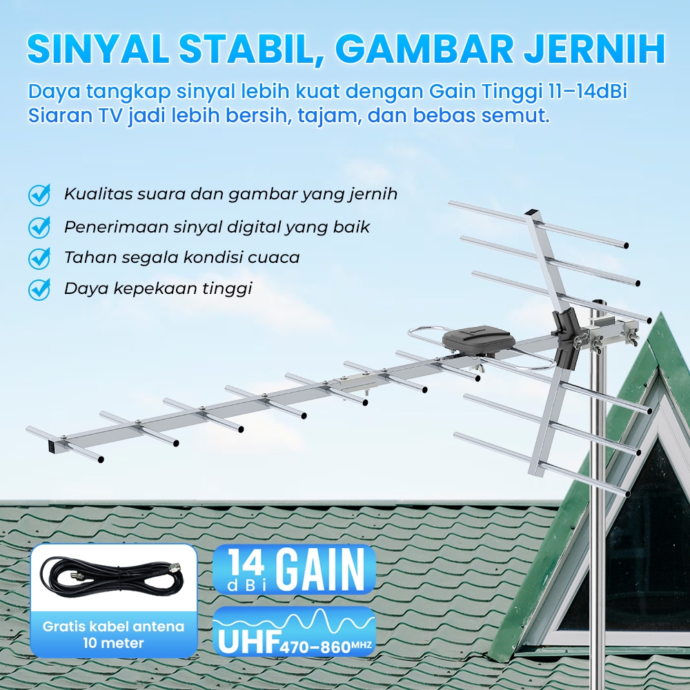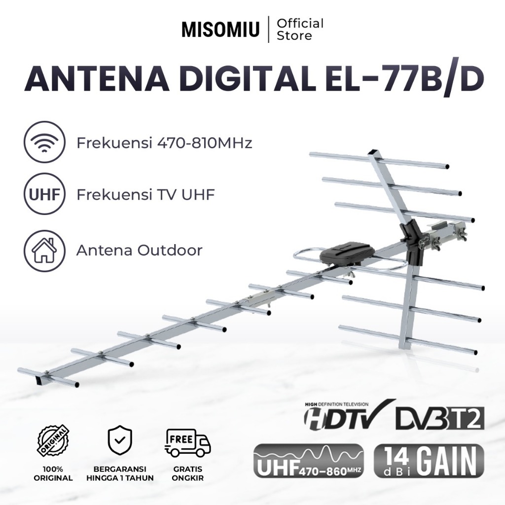 Antena Elston TV Digital UHF EL-77B/D Outdoor 14dB Gain Frekuensi 470-860MHz Kabel 10 Meter