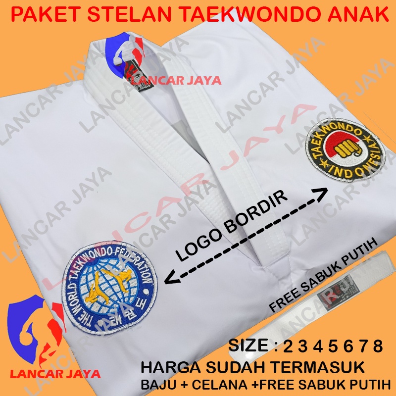 Baju Taekwondo Anak Sabuk Putih - Drill, Ukuran 2-8