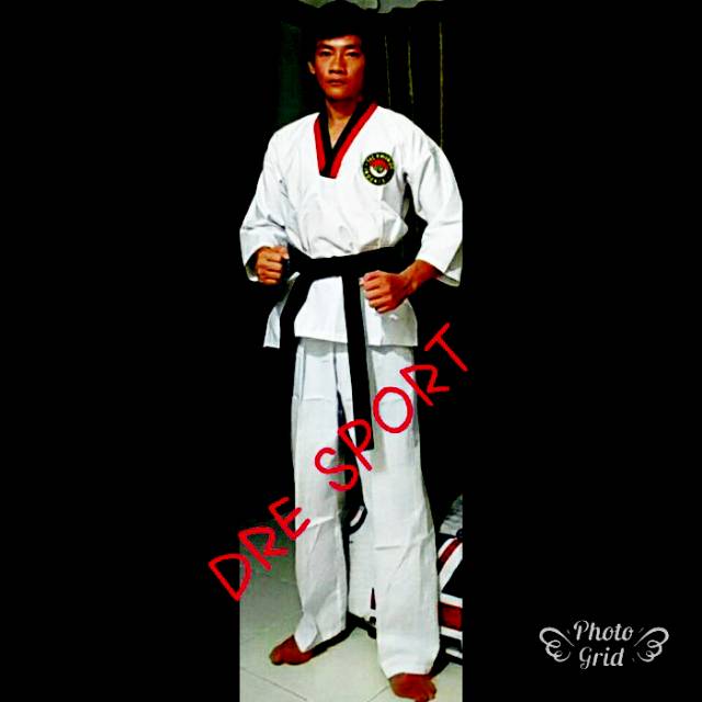 Baju Taekwondo Dewasa Kerah merah hitam S.M.L.XL