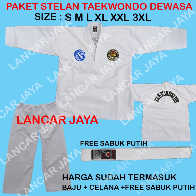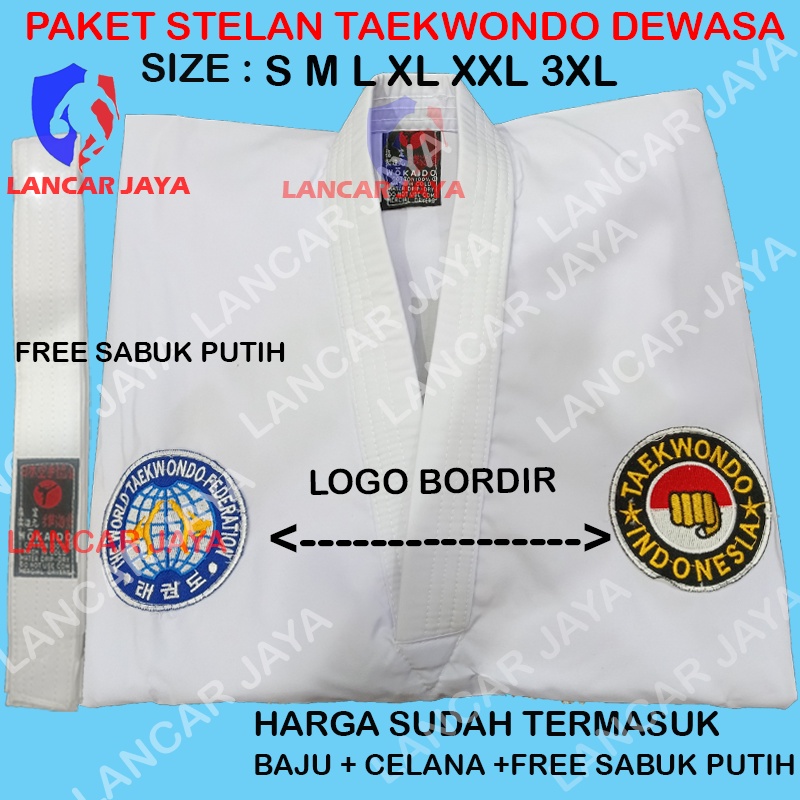 Baju Taekwondo Dewasa 1 Stel - Sabuk Putih, Bordir Depan