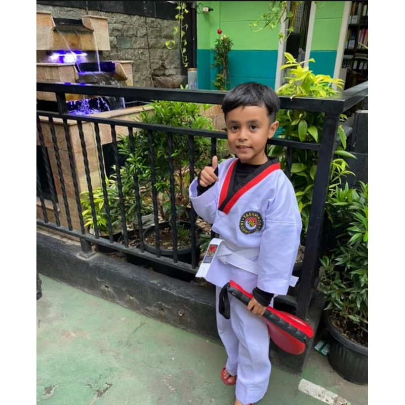 Dobok Taekwondo Anak Kerah Merah Hitam SunPower