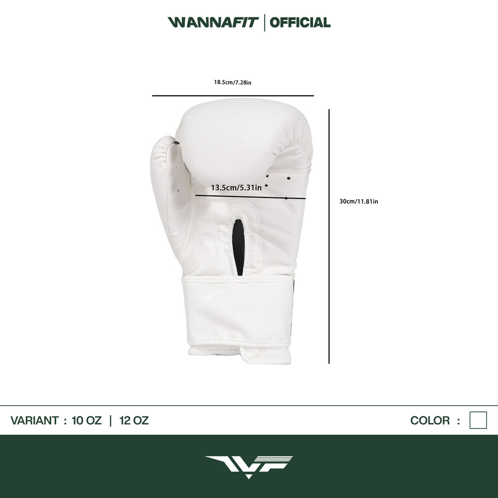WANNAFIT Sarung Tinju 10oz 12oz Premium White | Boxing Gloves Putih | Alat Olahraga Boxing MMA Muay Thai
