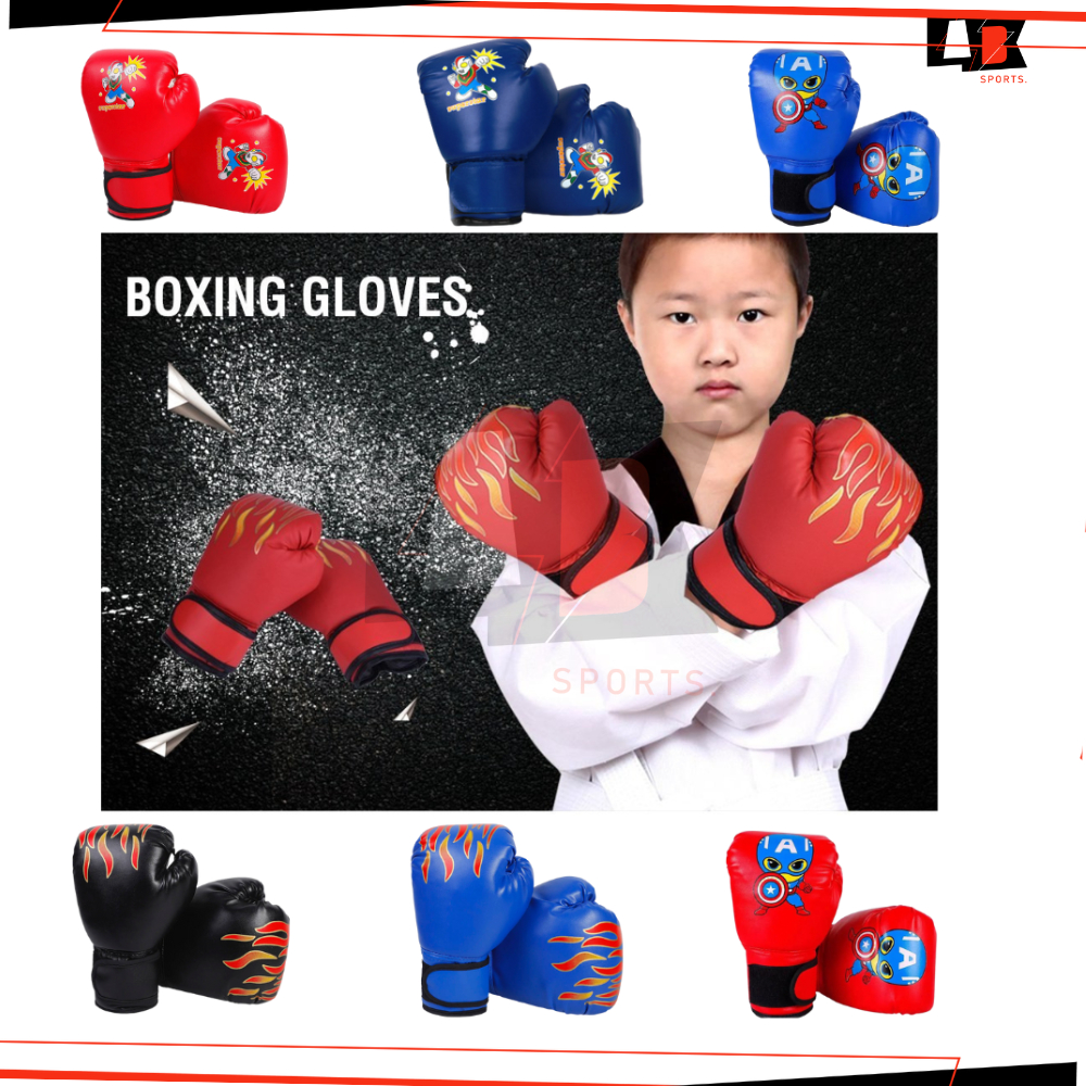 ABSPORTS - Sarung Tinju Anak Motif Ultraman Captain America Api / Muaythai Boxing Gloves Set