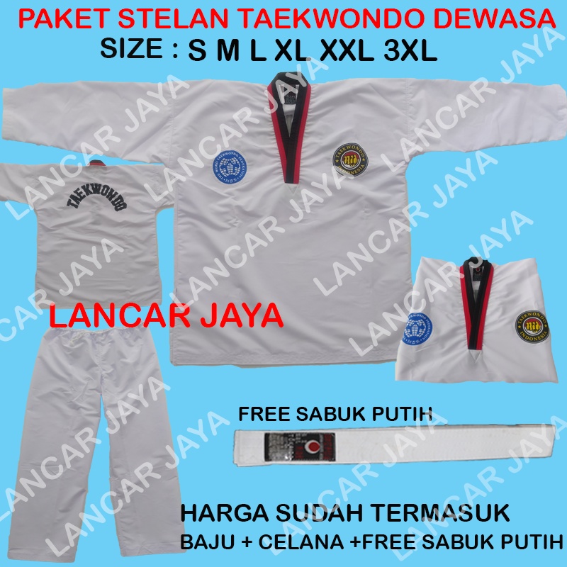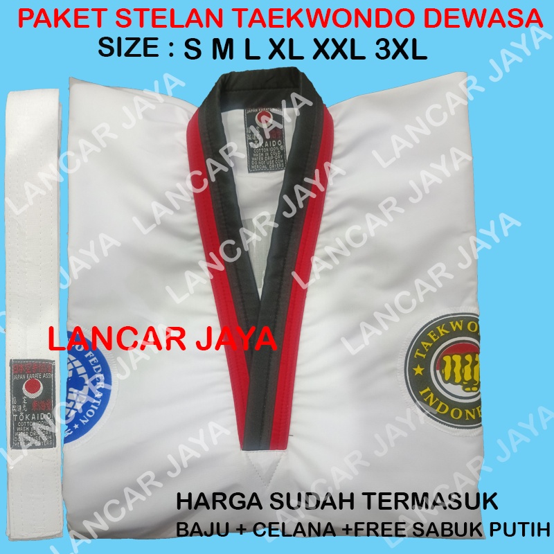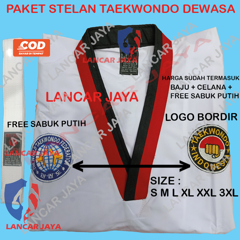 BAJU TAEKWONDO KRAH HITAM MERAH BELADIRI DEWASA FREE SABUK PUTIH