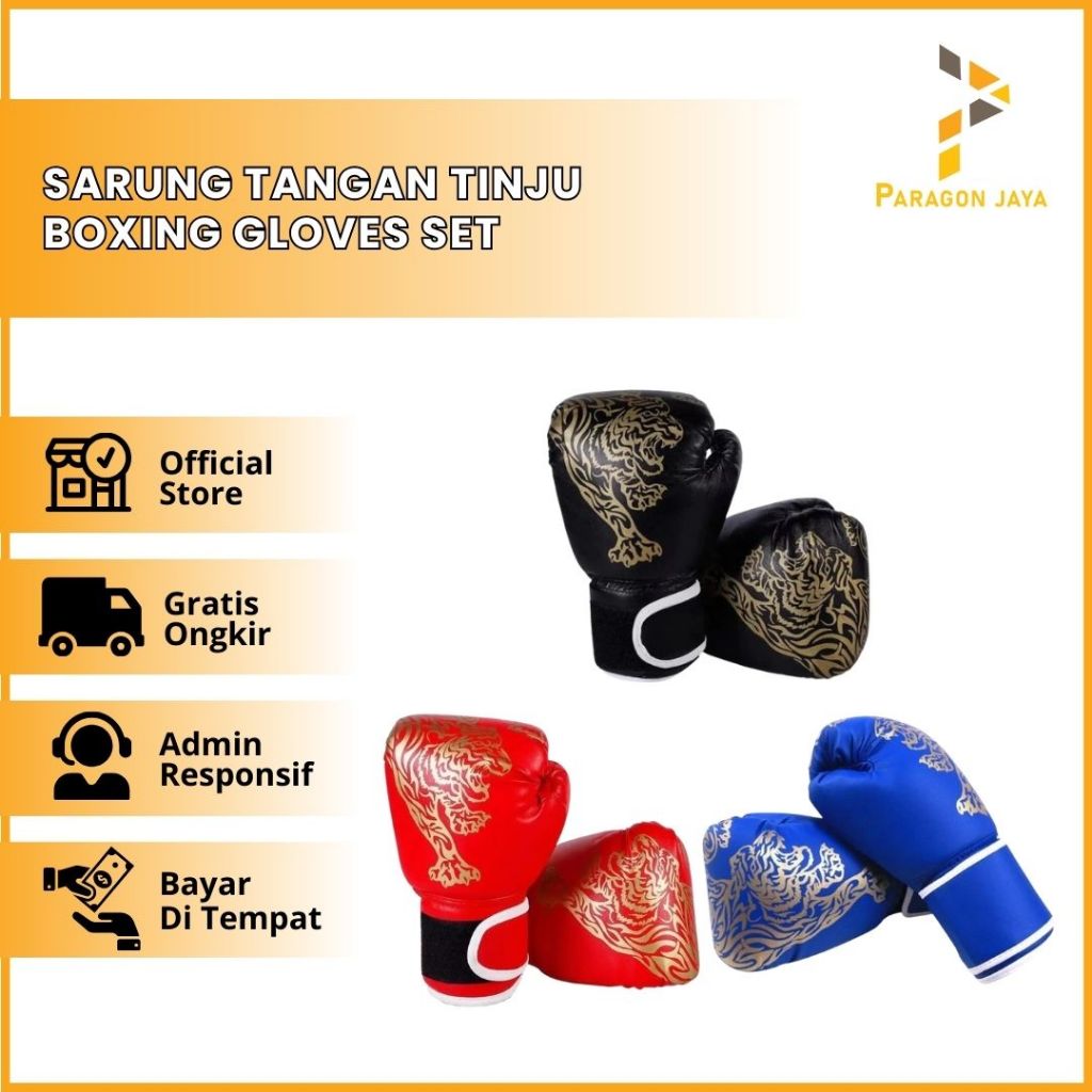 Sarung Tangan Tinju Boxing Gloves Set Muay Thai Motif Tiger Sport