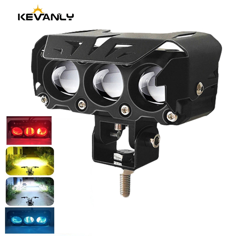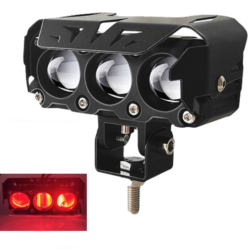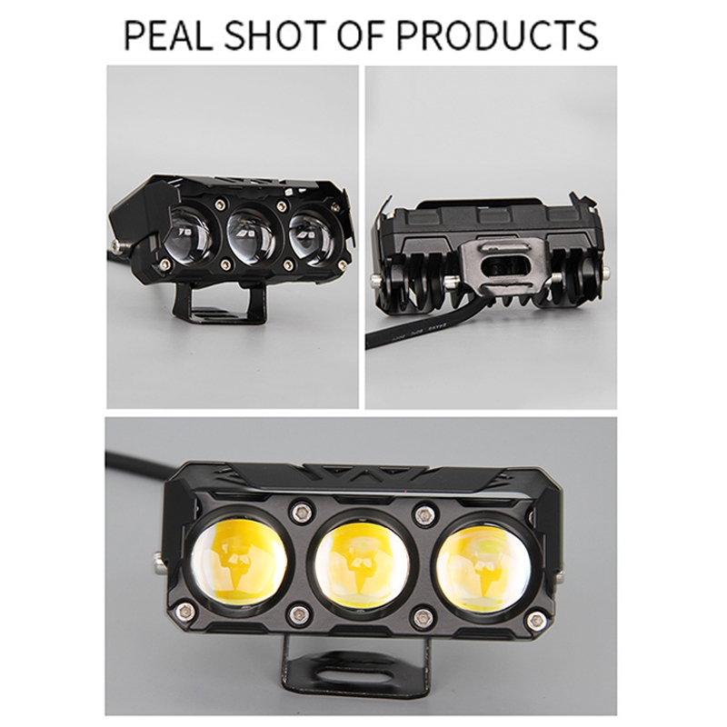 KEVANLY Lampu Sorot Mini Laser Sepeda Motor Tiga Mata Setan Merah Super Terang Semua Aluminium Putih dan Kuning Lampu So