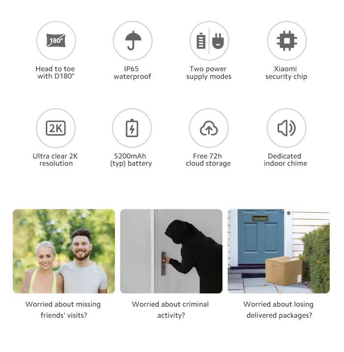 Xiaomi Smart Doorbell 3S 2K Ultra HD Night Vision Video Door Bell Waterproof Two Way Audio