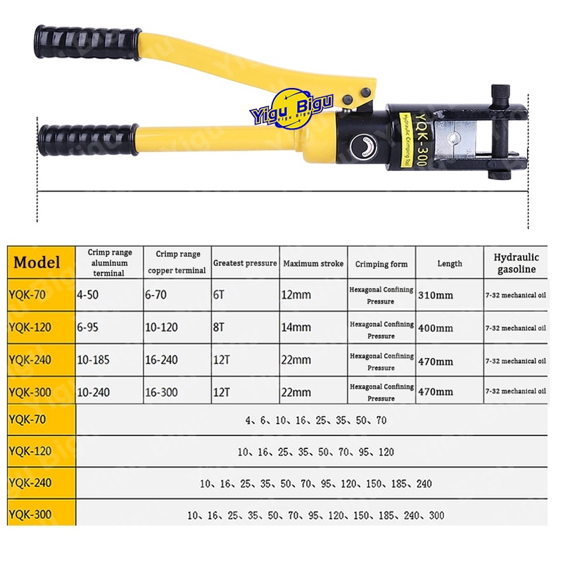Tang Crimping Tool YQK 70 YQK 120 YQK 240 YQK 300 TaiShan Tang Press Skun Hidrolik 8T-12T