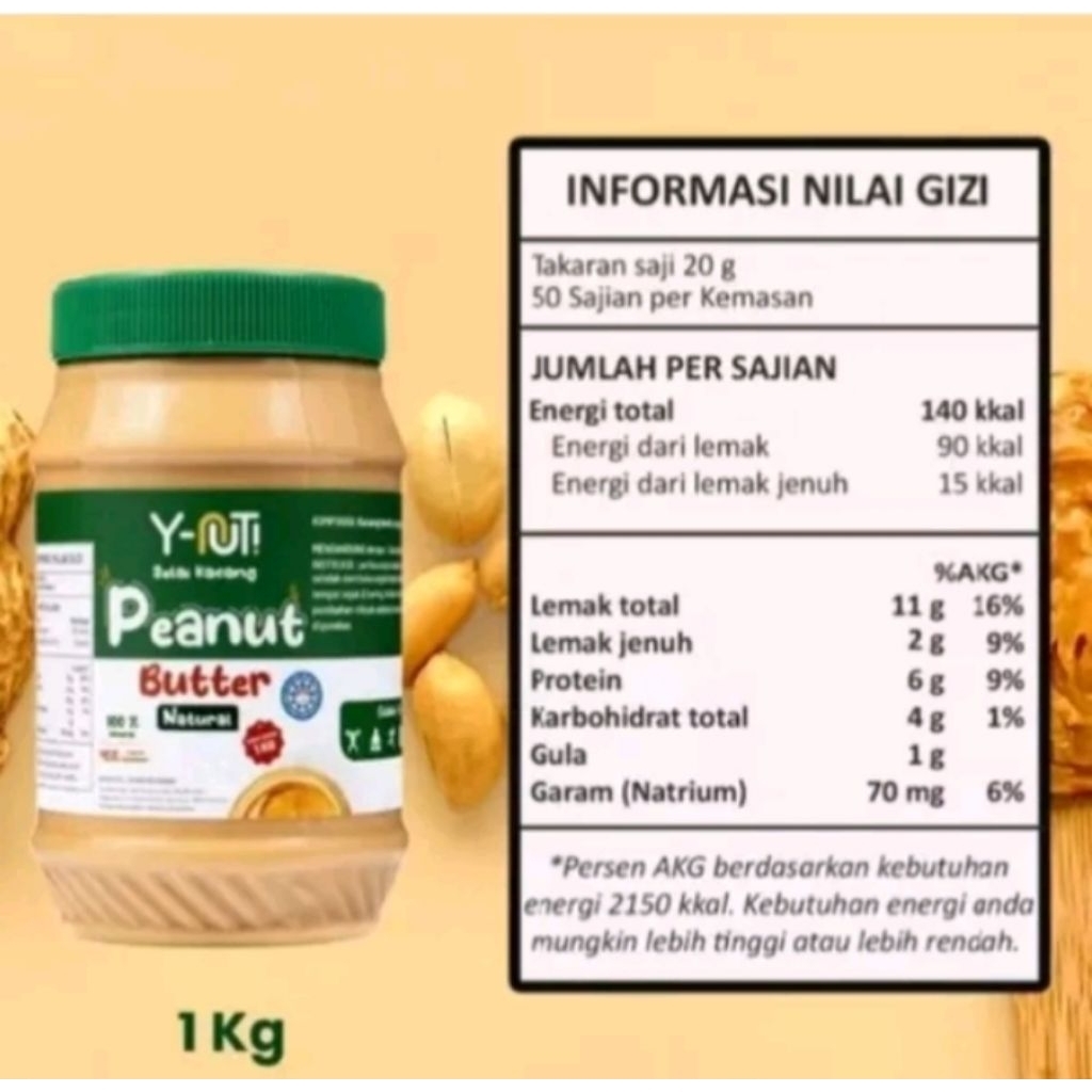 Y-Nut Peanut Butter Creamy, Chruncy, Natural Selai Kacang Y-Nut 350 Gram