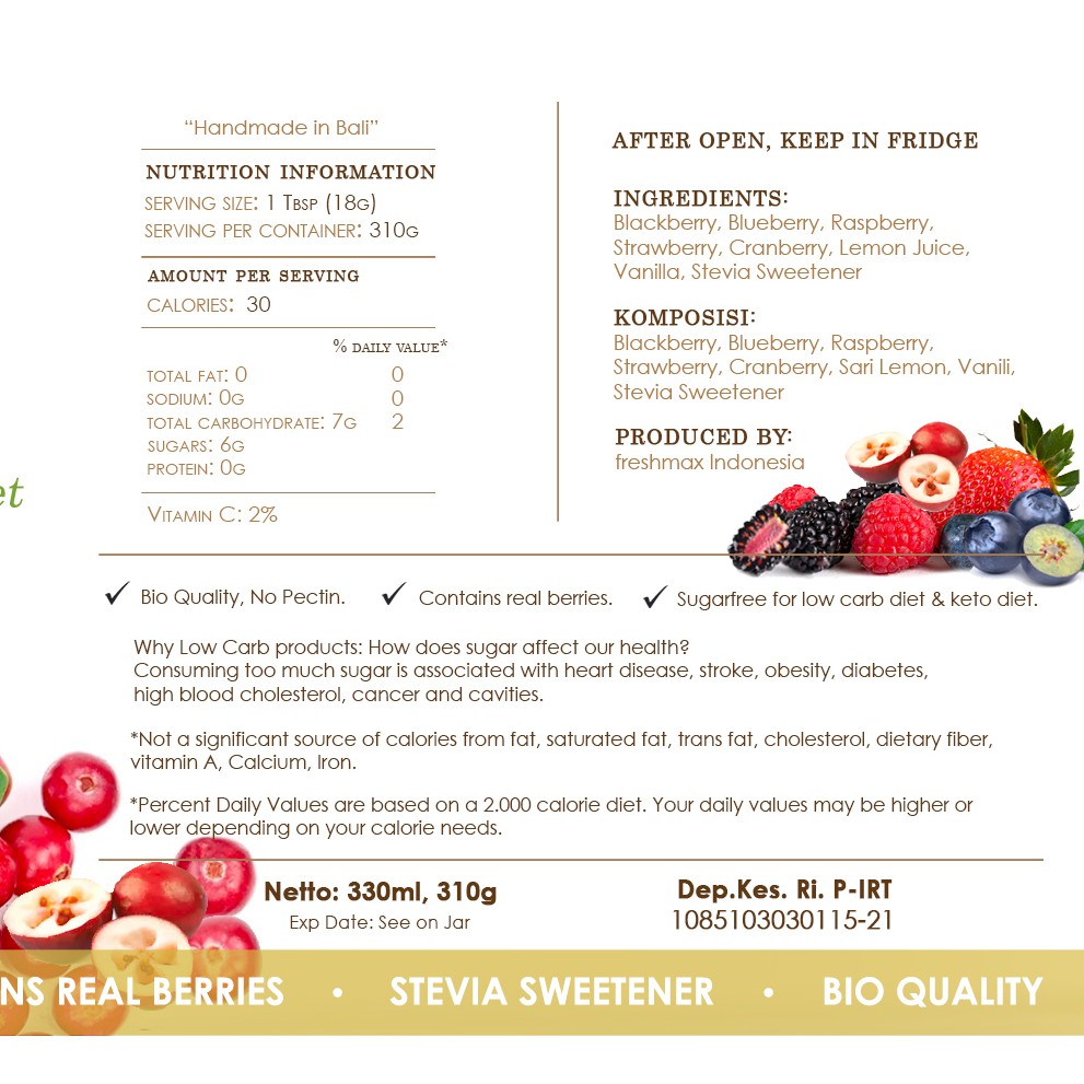 Healthy Freshmax - Selai sehat sehat Ready Stok- 100% Vegan Freshmax - SuperKeto Selai - No sugar added - Low Carb Mix